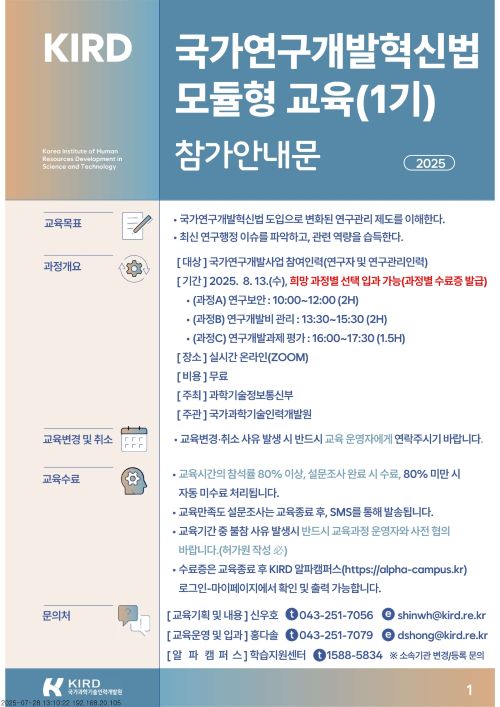 [KIRD] 국가연구개발혁신법 방문형 교육과정 수요조사 안내