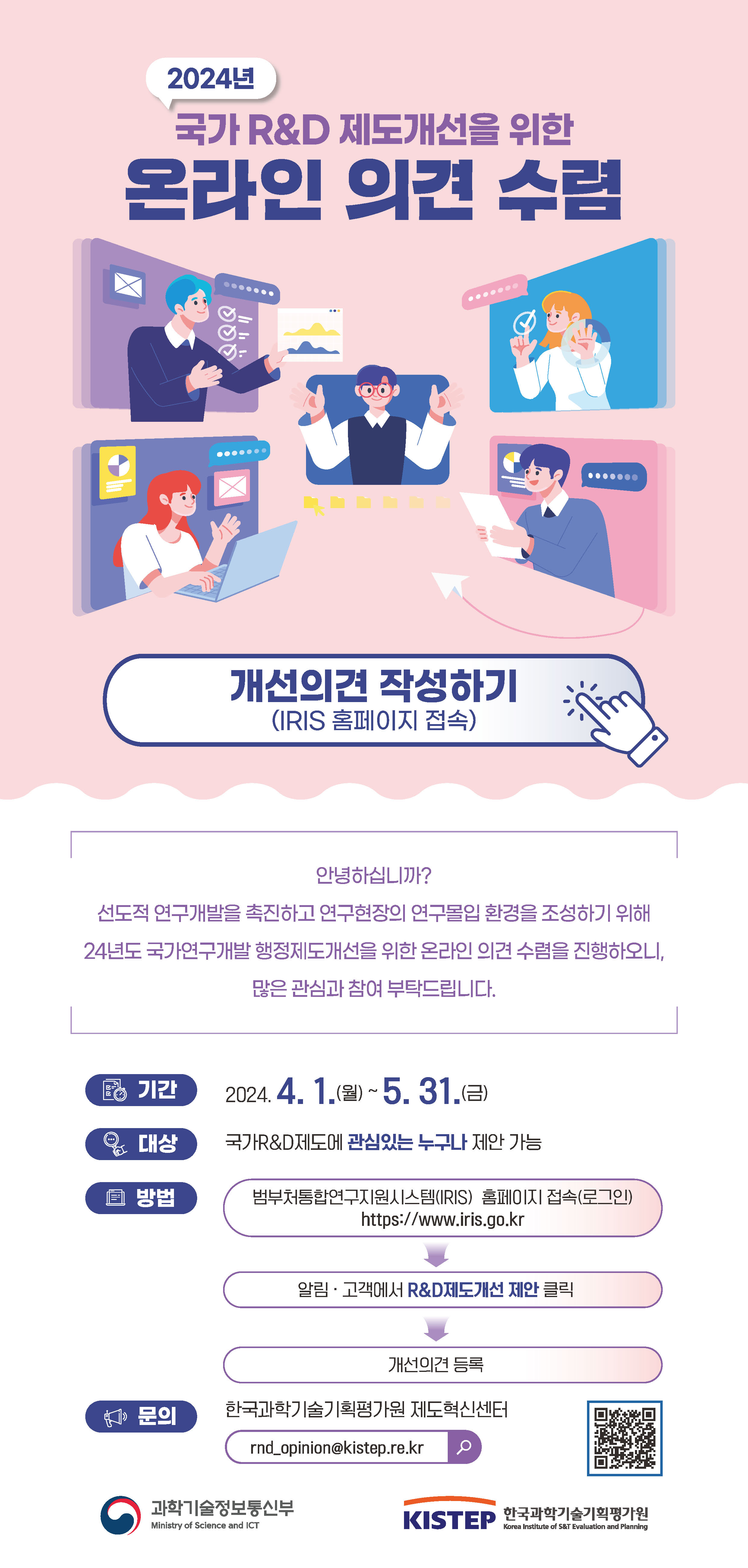 [한국과학기술기획평가원] 2024년도 국가R&D 제도개선 온라인 의견수렴